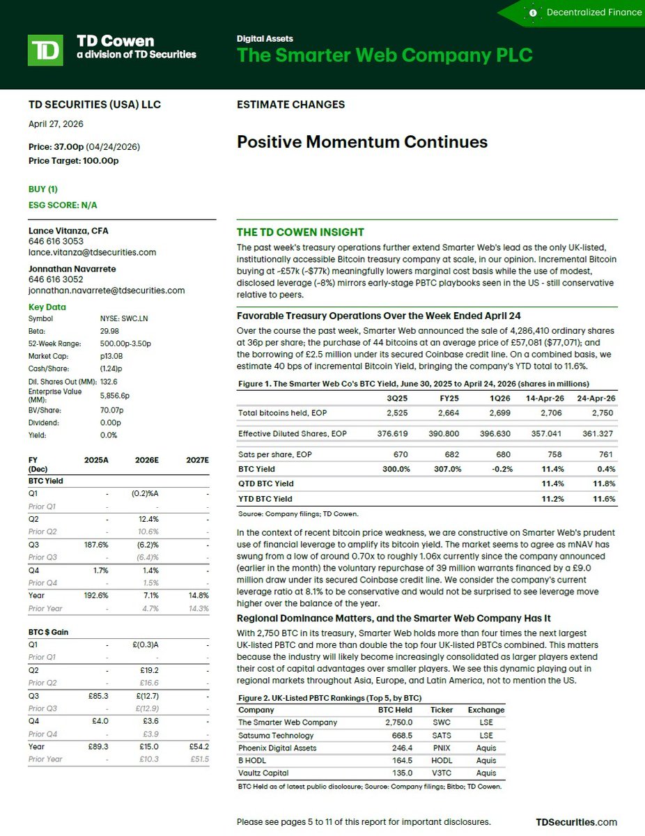 Digital Gold needs digital picks and shovels. That’s why TD Cowen’s coverage of #SWC ($TSWCF) feels significant. Major US investment banks don't often initiate analyst coverage on companies of SWC’s size. And they do it even less often for UK-listed stocks. Yet TD Cowen has today