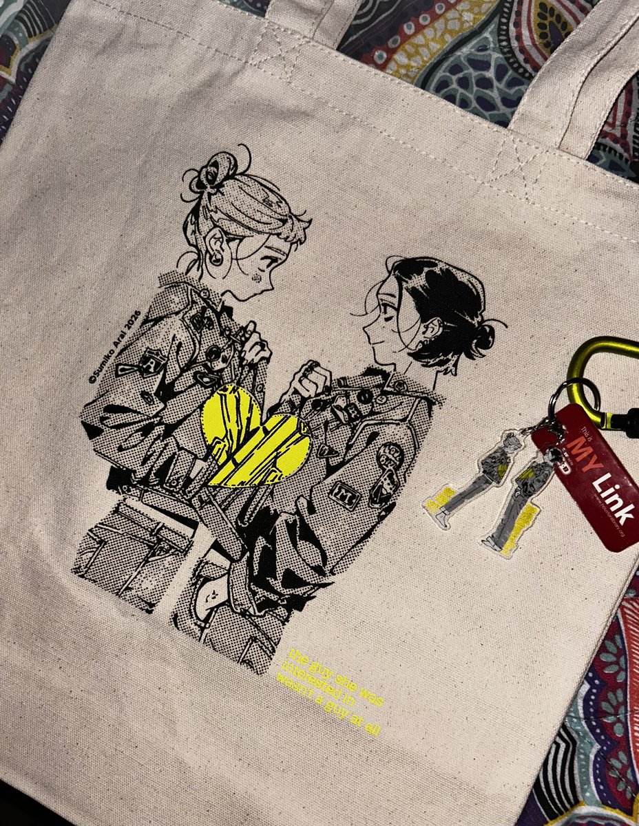 here to share kinioto exclusive tote bag and keychain sumiko had for volume 4 <3