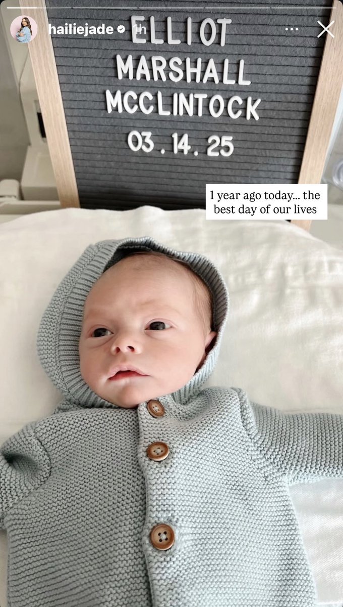 It's Elliot's first birthday today (already?!). For the occasion, Hailie has posted some photos of the day she gave birth and one for today's celebrations 🥹 Source: Hailie's instagram story.