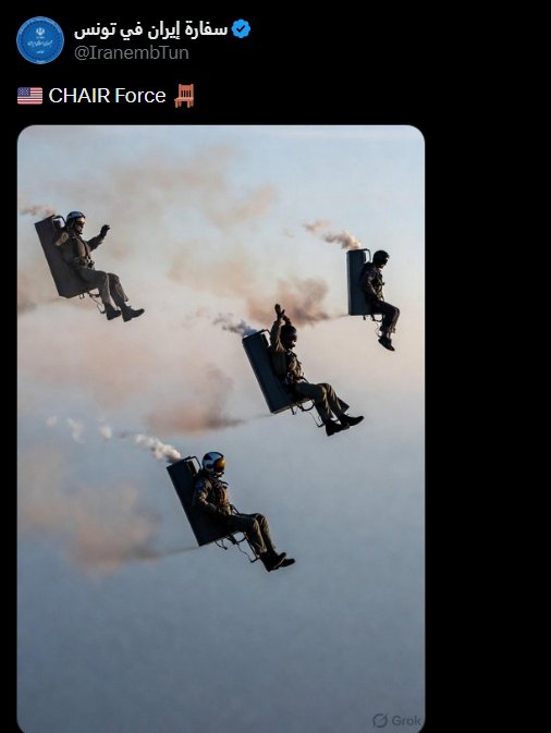 🚨 🇮🇷🇺🇸 More of Iran's mockery of USAF — "CHAIR Force" 🤣