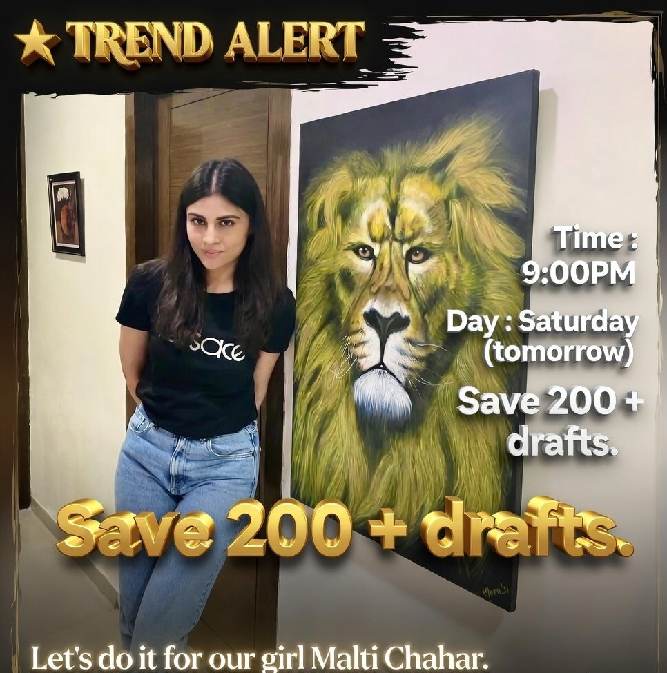 It has been months since we have done a planned activity in the form of trend. On the occasion of her new project i.e. much anticipated documentary , let us join one more time to show our love. Note : less than 24 hours left. #MaltiChahar #MaltiVerse