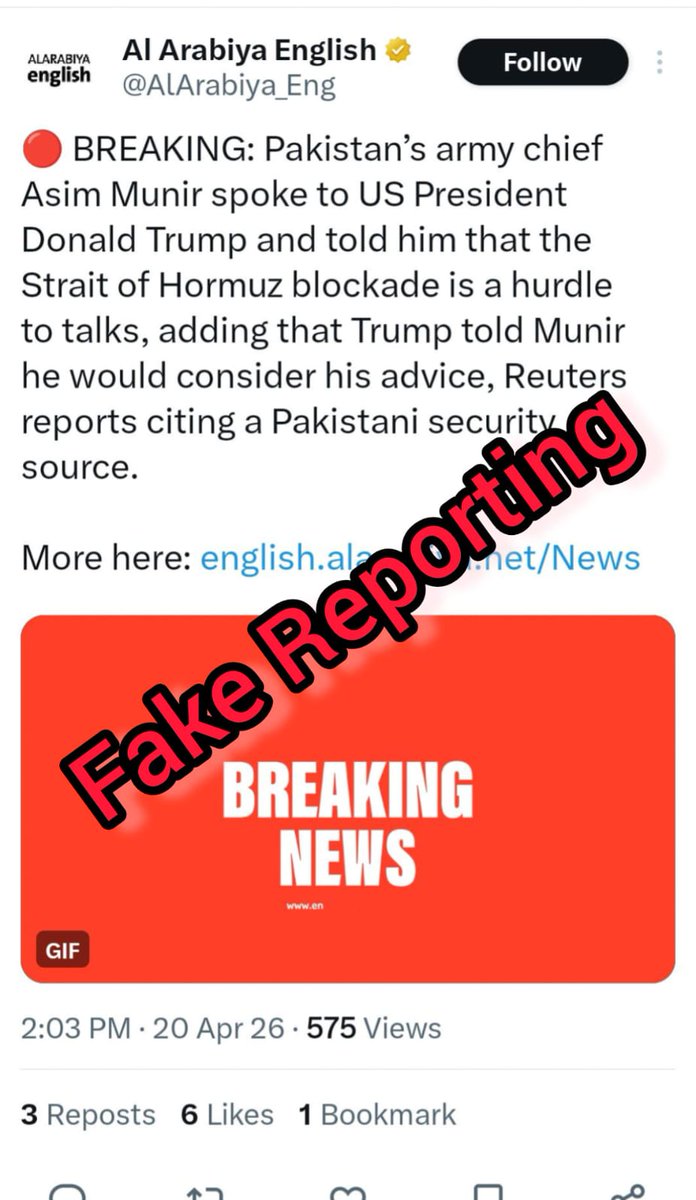ہر کسی کو سب سے پہلے رپورٹنگ کرنی ہے چاہے وہ خبر غلط ہی کیوں نہ مذاکرات سے متعلق غیر مستند خبروں سے دور رہیں باقی ان شاءاللہ سب ٹھیک ہوگا #GreatGreatFieldMarshal #IslamabadTalks